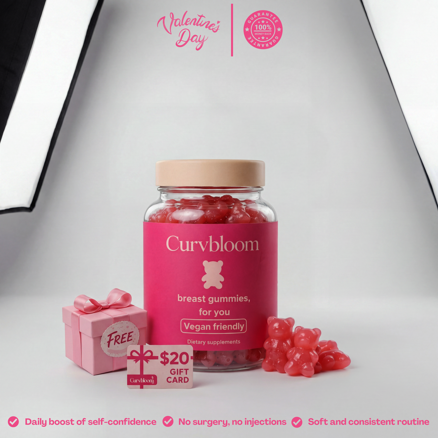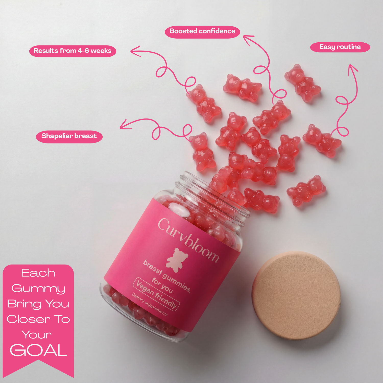 Vegan, delicious, and effective gummies designed to enhance your natural shape with softness and balance.
